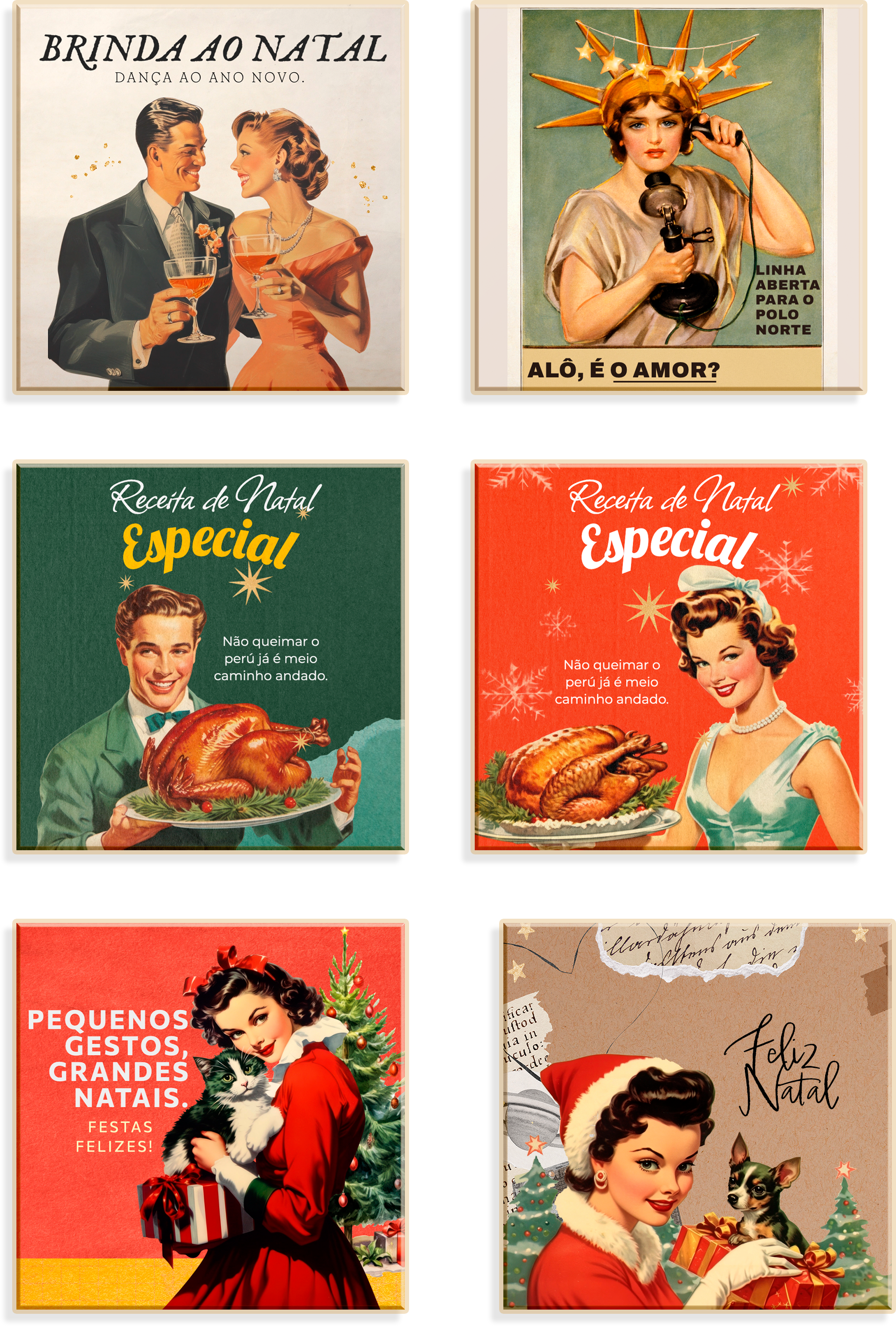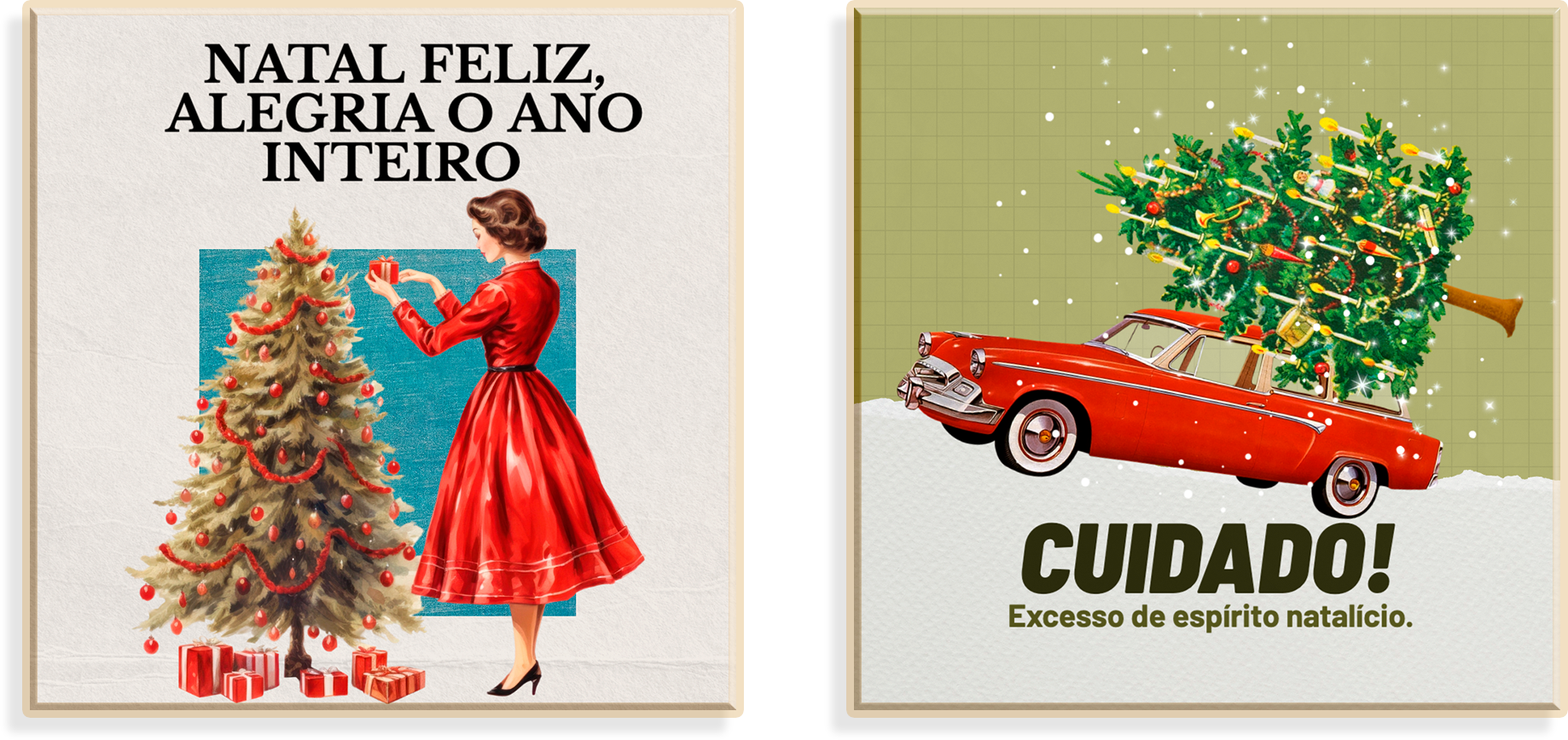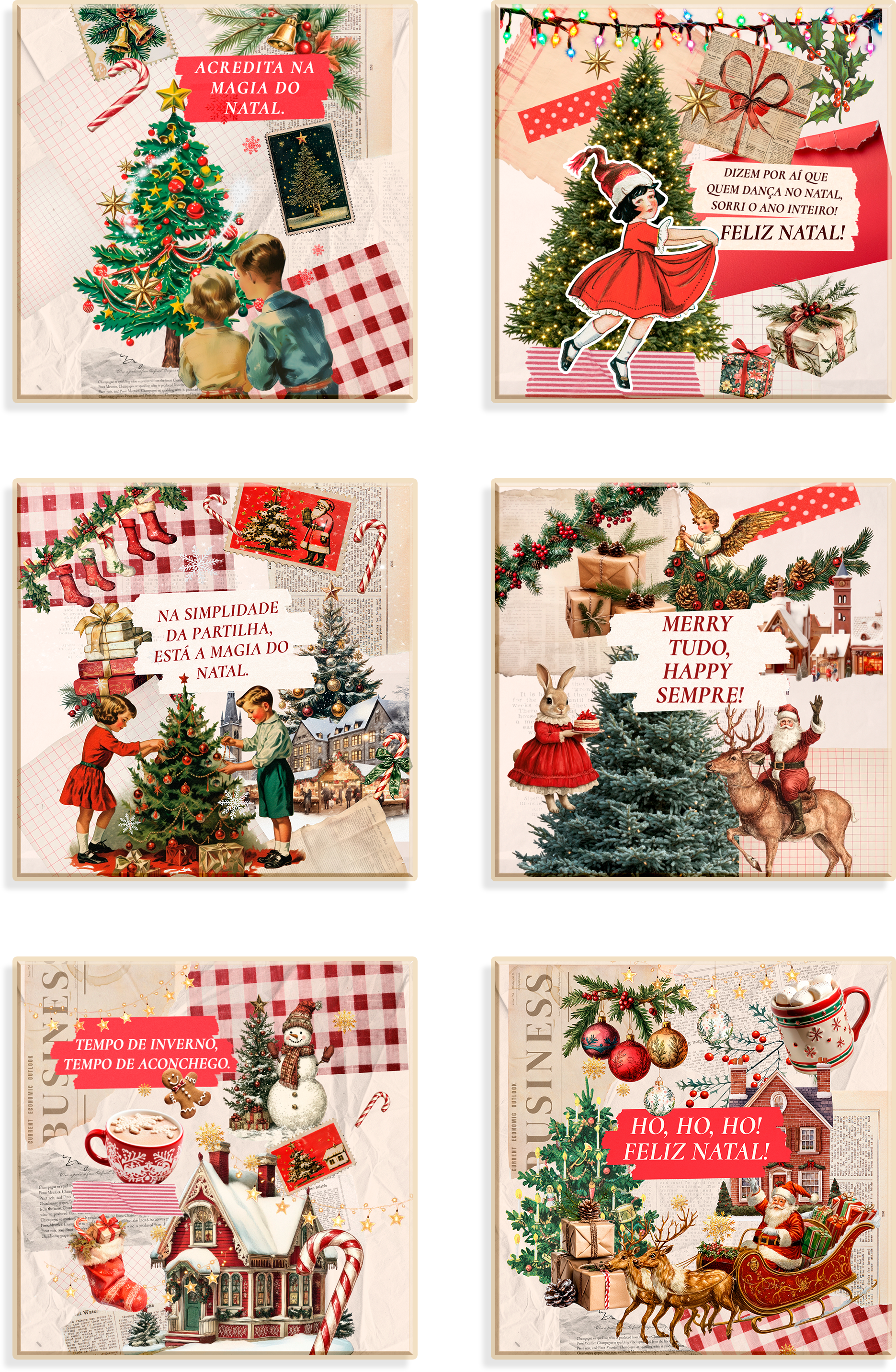 Cada peça é uma pequena cápsula do passado, ilustrada com designs vintage cuidadosamente selecionados para celebrar o encanto, a cor e a tradição desta época. Perfeitos para oferecer ou para transformar qualquer canto num cenário aconchegante e cheio de memórias.