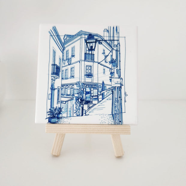 Cada azulejo nasce de um olhar atento sobre as cidades portuguesas: ruas, fachadas, sombras e detalhes que definem a sua identidade.