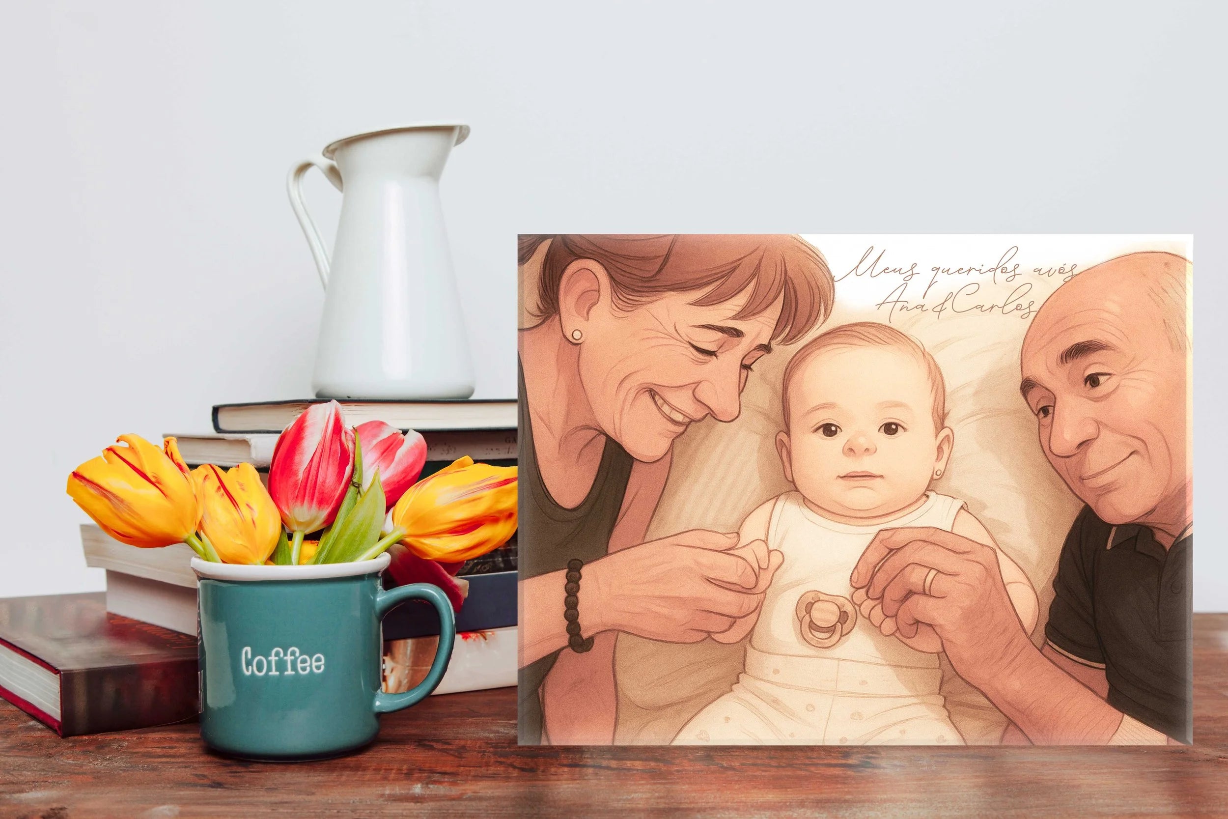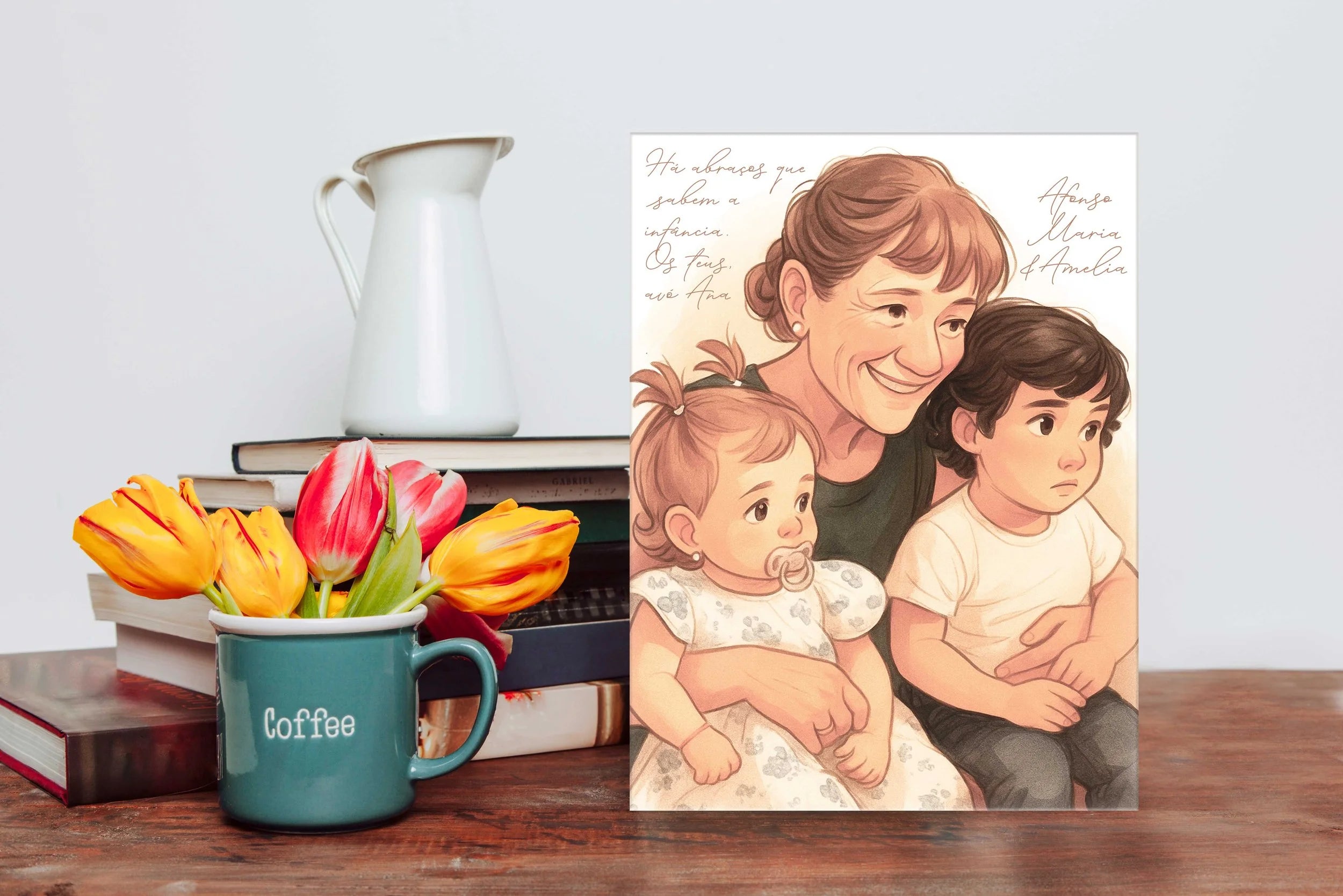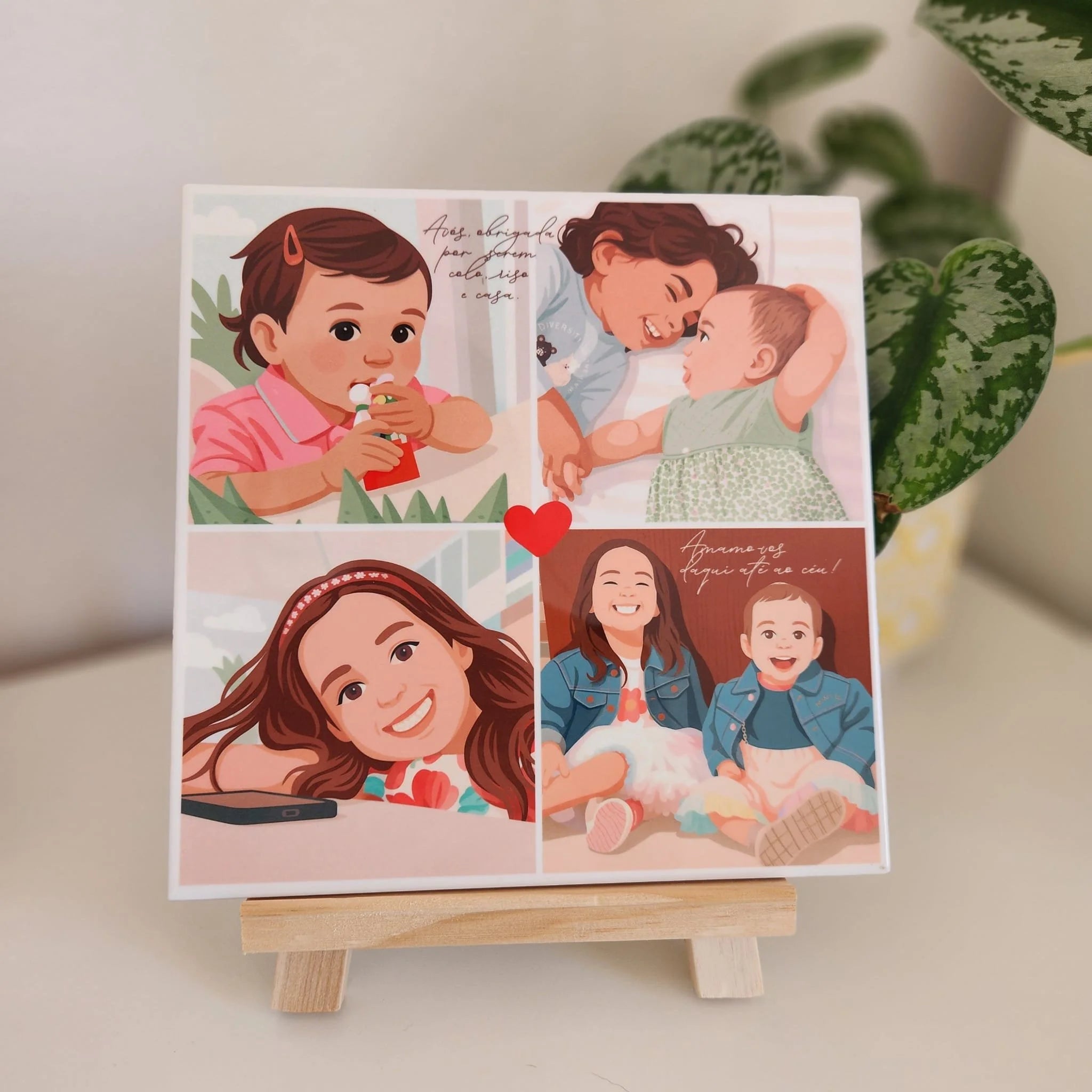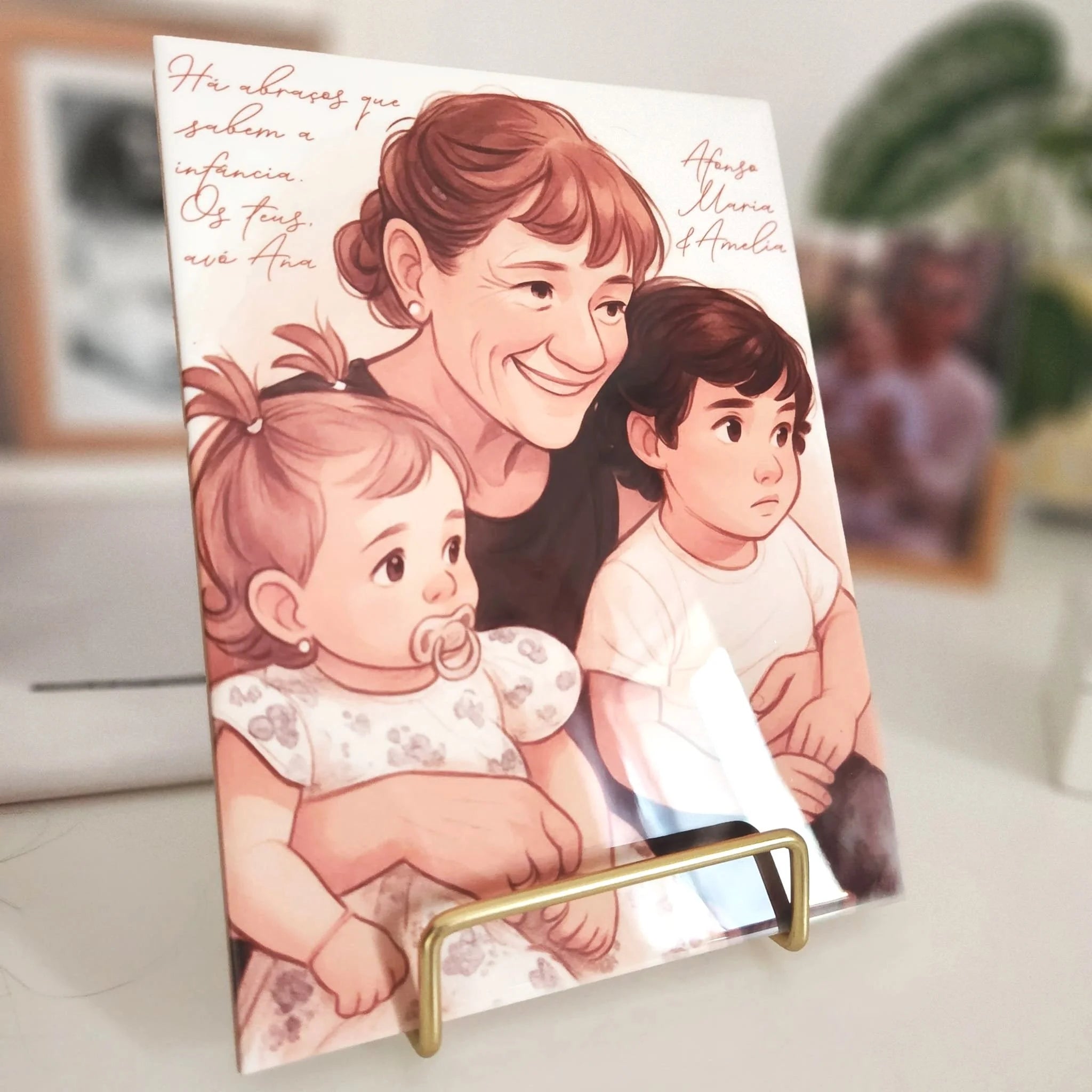 Personalizados com ilustrações únicas, frases com alma e nomes reais, estes azulejos são mais do que presentes — são pedaços de memória.