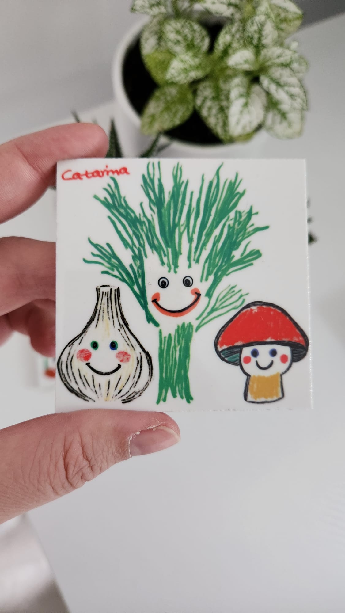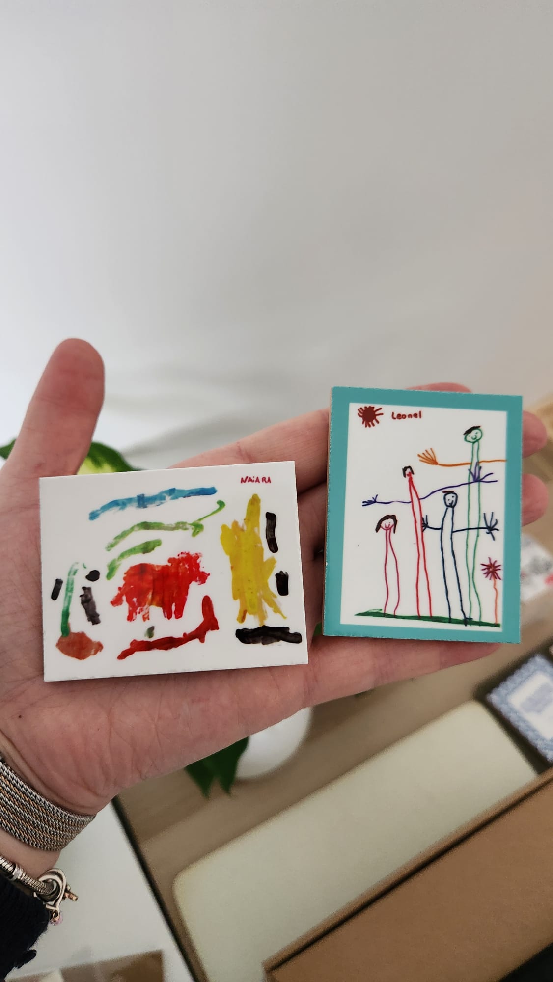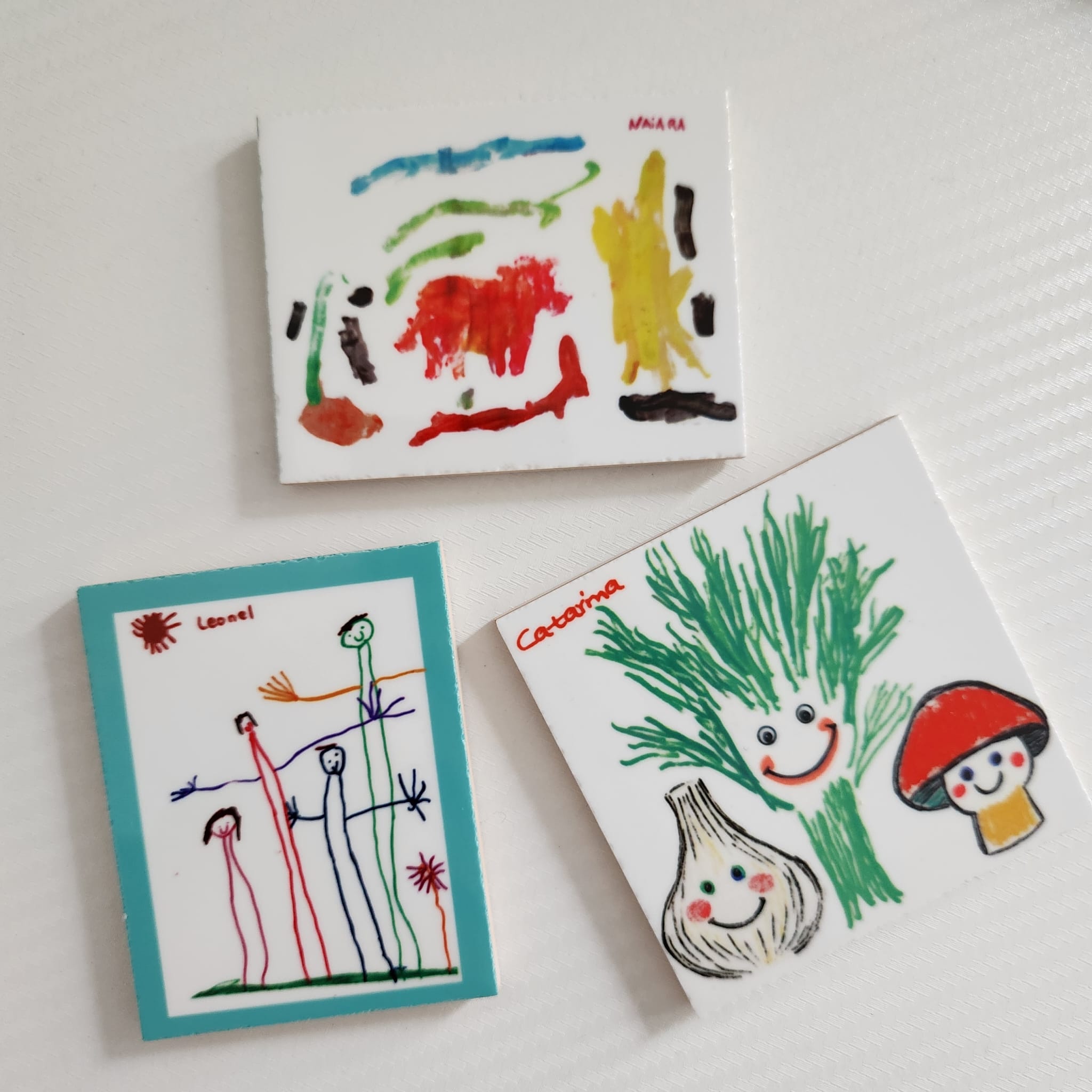 Formato 7×7 cm e 5x7 com íman integrado (a escolha entre os 2 tamanhos será feita de acordo com a forma do desenho);